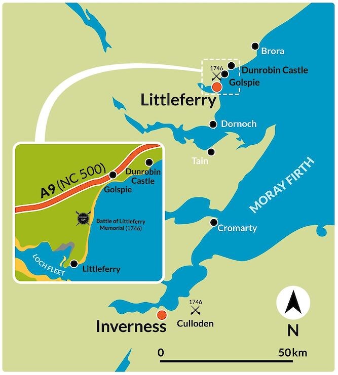 Further info on the battle be read at https://www.venture-north.co.uk/blog/the-battle-of-littleferry.